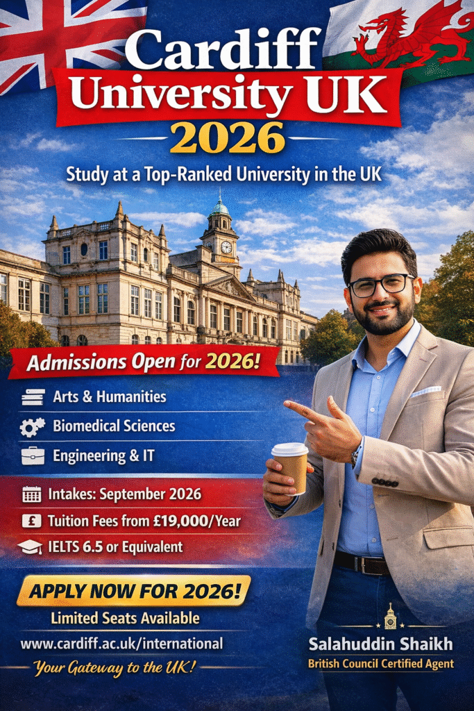 Your ultimate resource for “cardiff university uk” admissions, fees, English requirements, intakes, and how students from Pakistan can apply.